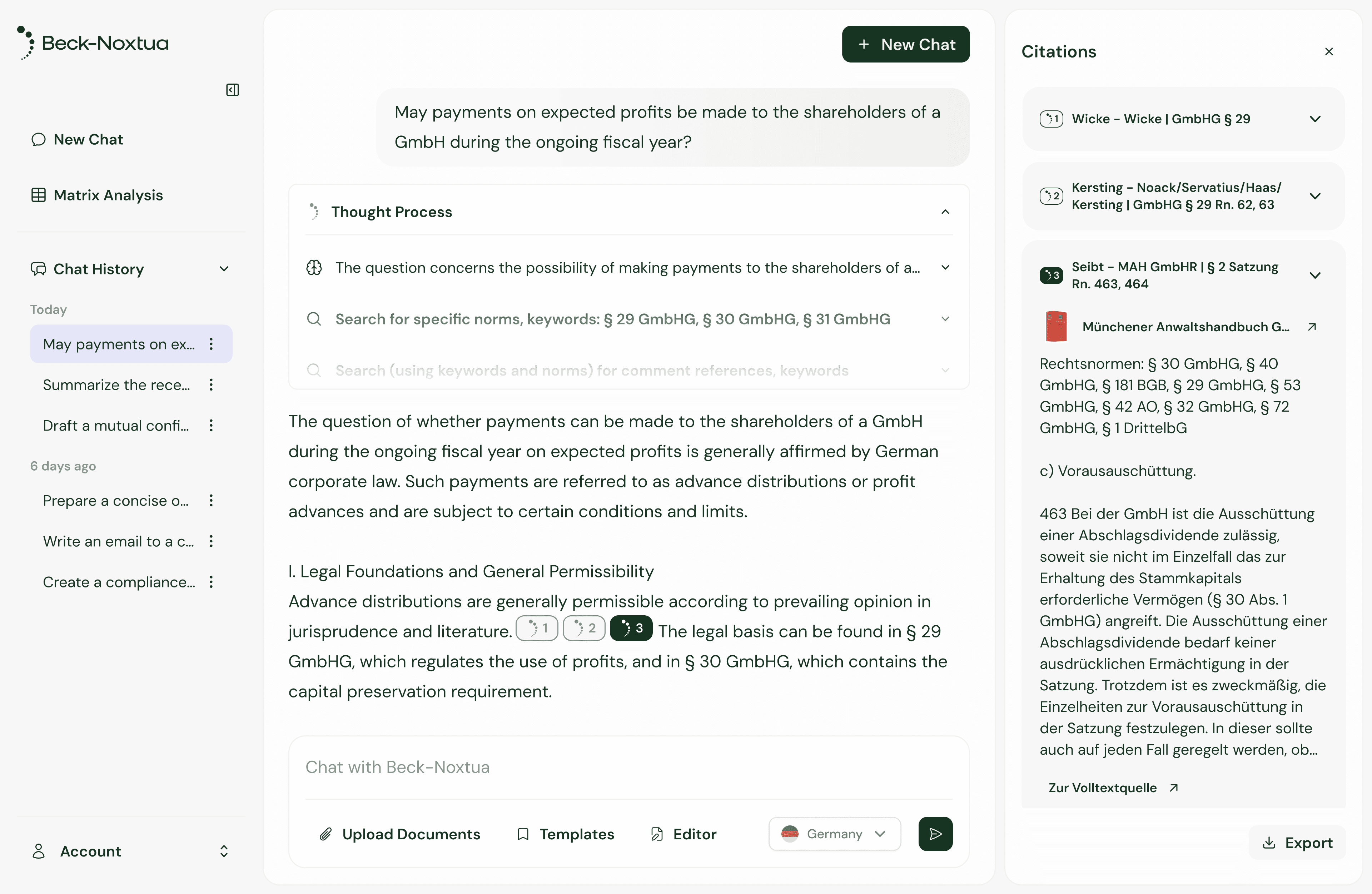 Run comprehensive legal research with Noxtua, using literature from legal publishers and delivering legal-grade results with complete source references.